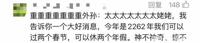 但要是一年当中唯独12个农历月,那么年长平均是354天,这要比阳历的年长少了约略11天,旷日永久,就会出现寒暑倒置的景观,春节有可能在夏天来过。 因此,古东说念主念念到了“置闰”的门径。 通过每两到三年加多一个闰年的目的,使得农历的平均年长与阳历的年长相一致, 而多出来的这一个农历月等于闰月。 连合“置闰”礼貌,2262年闰正月,是以,2262年有两个春节。 若出现两个节日 原则上第一个月的节日为沐日 12月18日,话题#2262年2个春节只放1次假#再冲上热搜一。