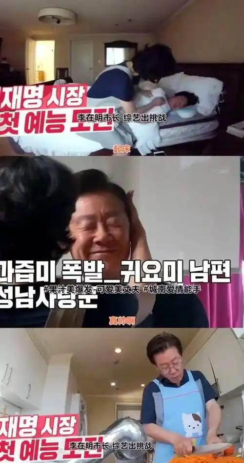 与之不同的是另一双中年政客佳偶,时任韩国城南市市长李在明,为了展示家庭慈悲、亲近大家的一面,也为了给后续的政事生存累积东说念主气,也上了这档综艺。