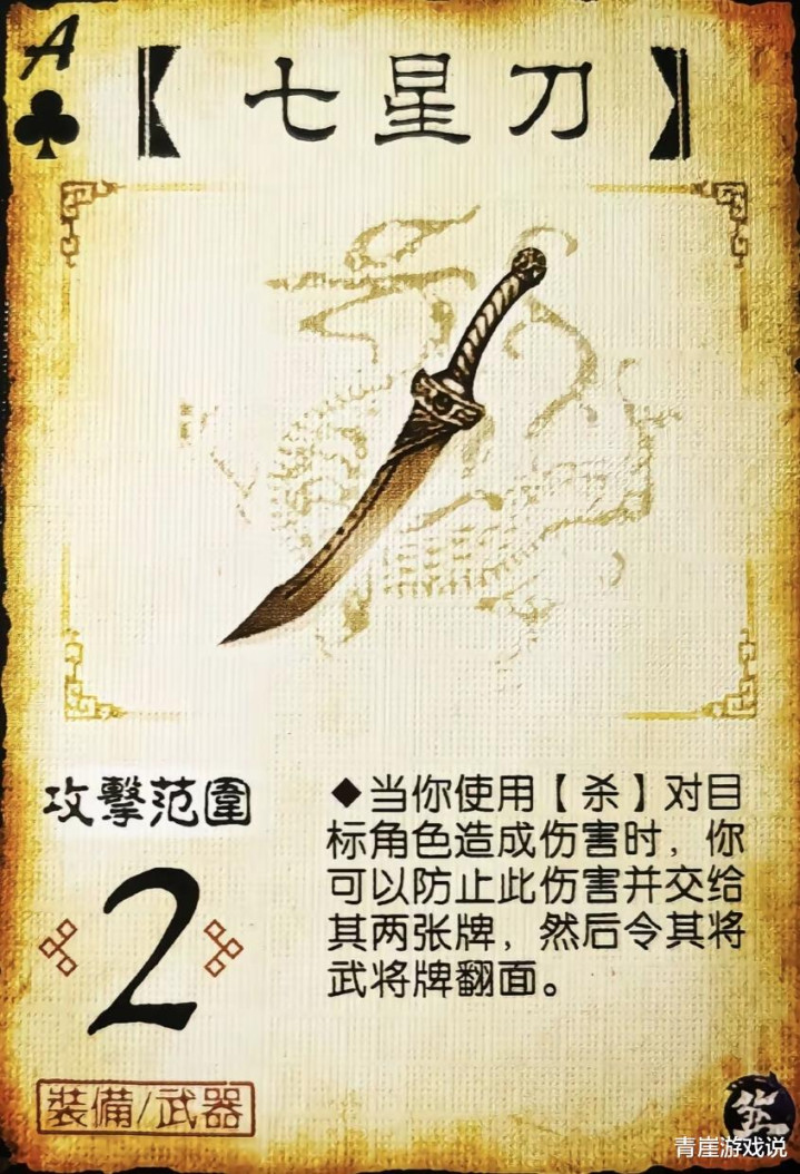 七星刀抨击距离2,火器后果肖似寒冰剑,王人是不变成伤害,改为让对方获取负面后果。寒冰剑仅仅将杀的伤害改成弃牌,而七星刀更张皇,变成伤害王人不错交给其两张牌,对方会翻面!一次翻面的后果不要太强,足以把勉强结果死,如果军争模式下,一个AOE伤害,七星刀堪比多东说念主【流放】。