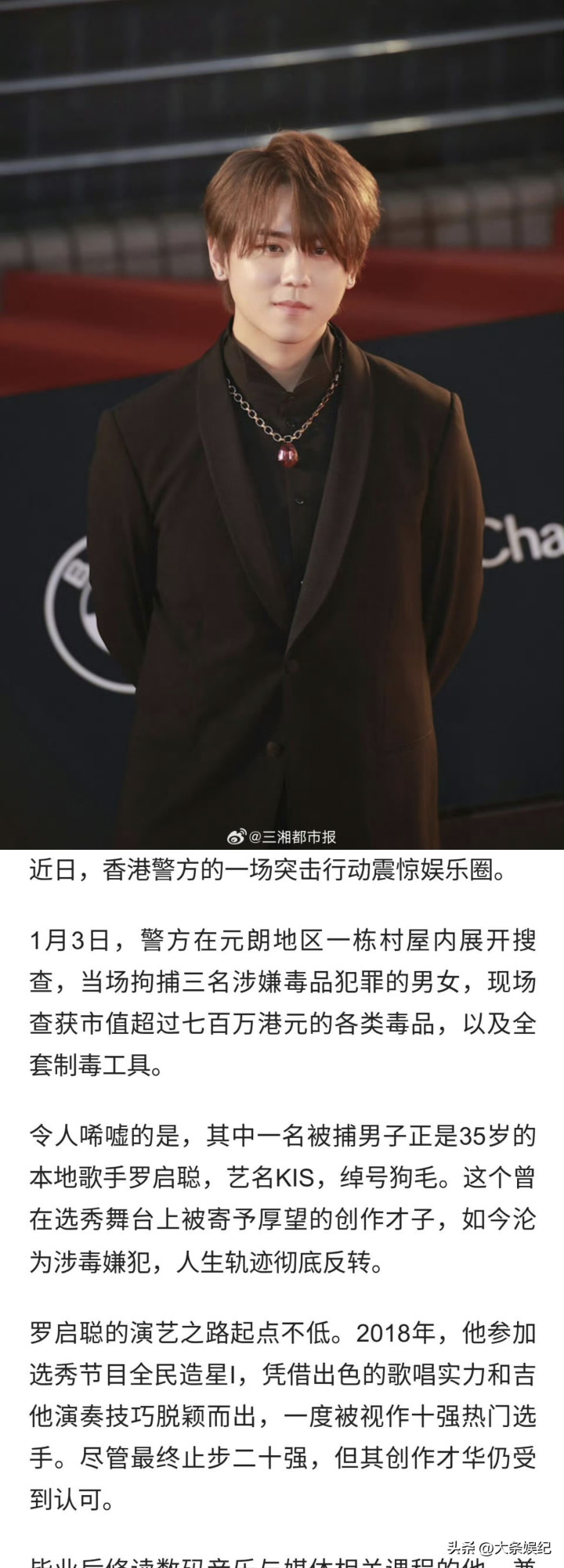 文娱圈又有一个大新闻了,35岁歌手罗启聪因涉毒在香港就地被捕,涉案金额高达774万港元。还是不错细目他的演艺圈干事透顶无了,不会再有再走运行的可能。