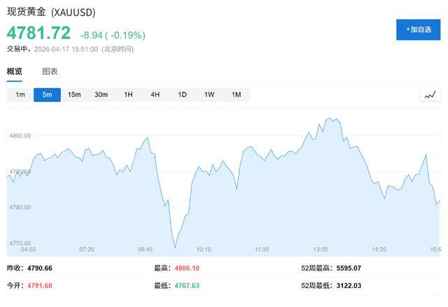 黄金价钱基本合手平,报每盎司4781好意思元。