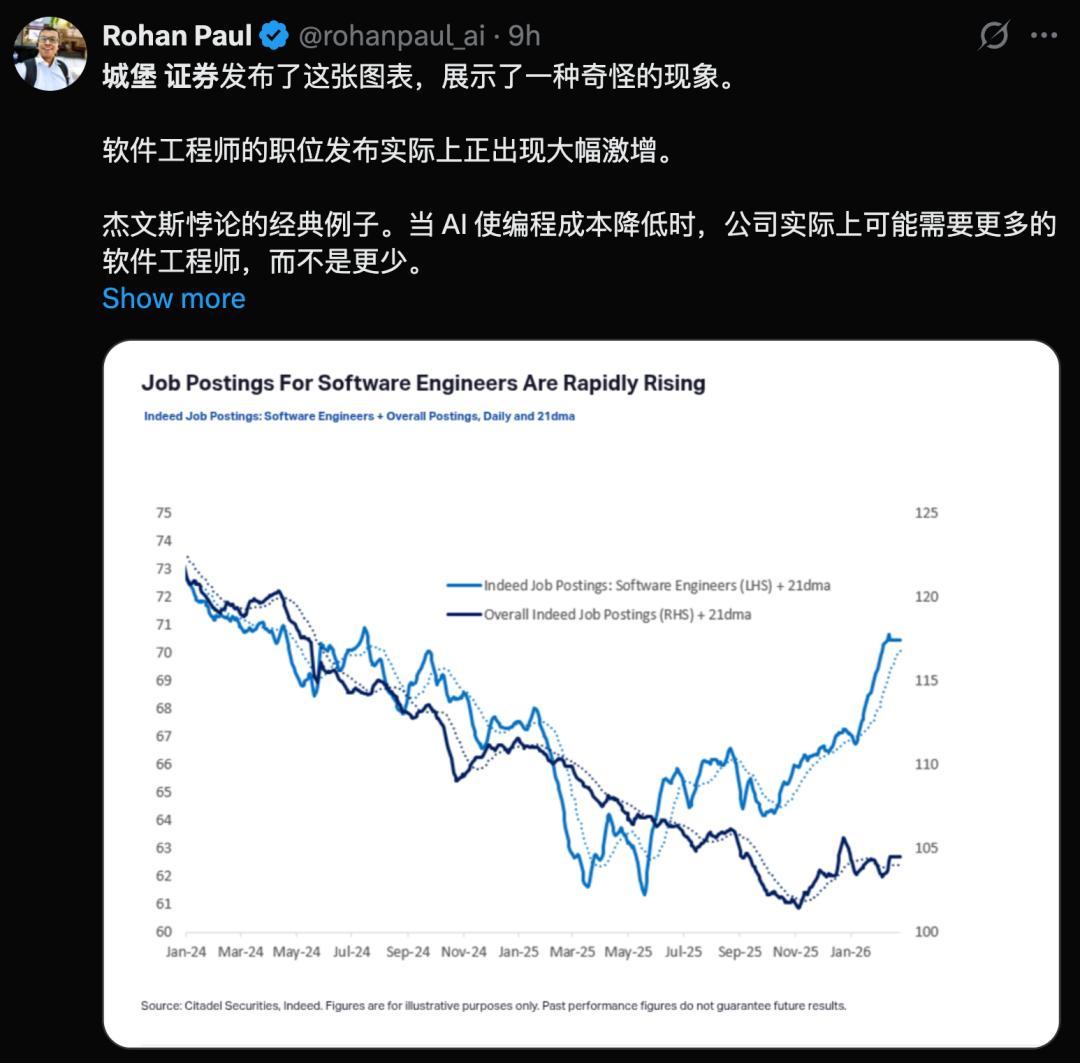 Citadel的战略分析师Frank Flight在敷陈中逐条拆解Citrini的论点,以为其忽略了宏不雅经济基本面和技巧选择弧线,实质上是「对AI的无知震惊」。