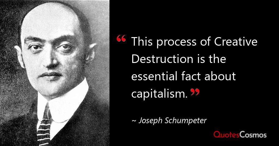 经济学家Joseph Schumpeter在1942年写谈:本钱宗旨的实质不是价钱竞争,而是新家具、新技巧、新组织方式对旧寰球的糟塌式替代。